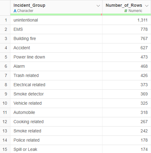 The circular image is a screen clip of the types of calls most prevalent in Engine 54’s area, overlaid with call volumes. The node in the center of the graph represents Engine 54. We use edges radiating out from the central node to connect each node in the graph, colored by incident types. Larger call nodes indicate more than one call tied to an address (based on lat-lon codes in the data). I have labeled the most frequent call types (using Exploratory) for the Engine 54 area: